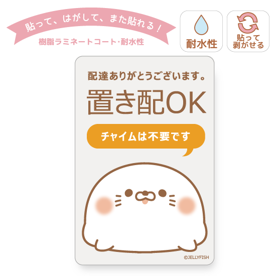 耐水性樹脂ラミネート・置き配ステッカー『毒舌あざらし/置き配OK・チャイム不要』