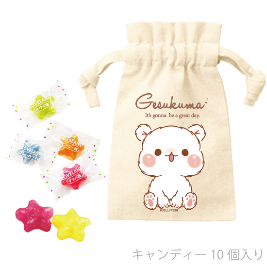 キャンディ入りコットン巾着ポーチ『ナチュラル/ゲスくま』