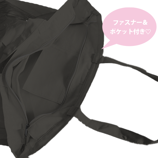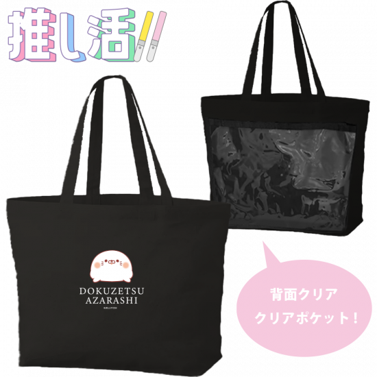 推し活 クリアポケット&ファスナー付きトートバッグ 『毒舌あざらし/ブラック』