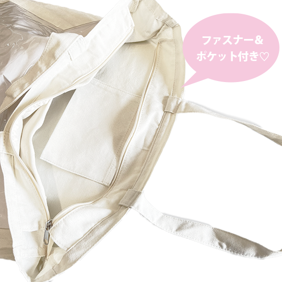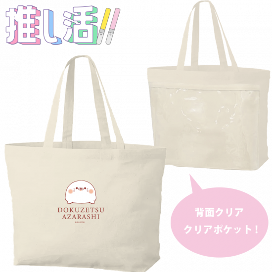 推し活 クリアポケット&ファスナー付きトートバッグ 『毒舌あざらし/ナチュラル』