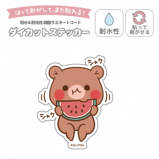 耐水性ダイカットステッカー『スイカ/ちびくま』