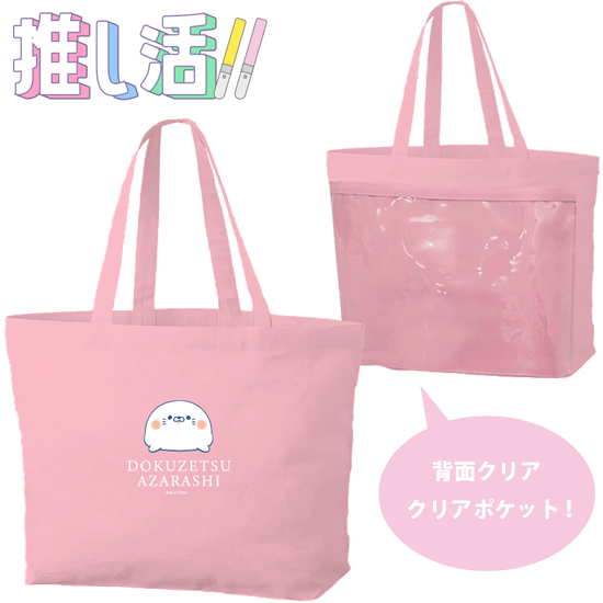 推し活 クリアポケット&ファスナー付きトートバッグ 『毒舌あざらし/ピンク』