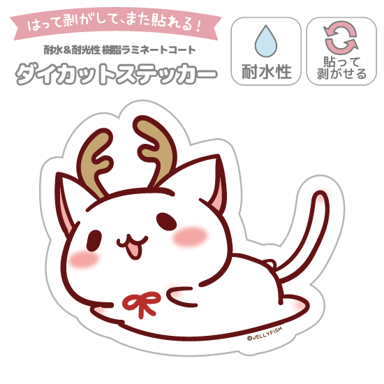 耐水性ダイカットステッカー『トナカイ/だいすきネコちゃん』