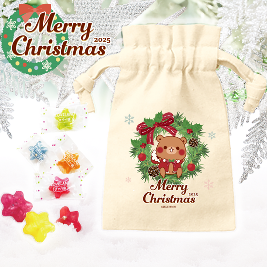 2025Xmas限定・キャンディ入りコットン巾着ポーチ『ちびくま』